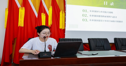 学生宣讲员作《躬身传薪火,青春沃新田——农业强国的青年答卷》主题宣讲,号召青年大学生要以“功成不必在我”的精神境界和“功成必定有我”的历史担当,在希望的田野上奋力耕耘,用智慧与汗水浇灌出农业强国的绚丽之花,让农业强、农村美、农民富的美好愿景,在中华大地化为生动现实。